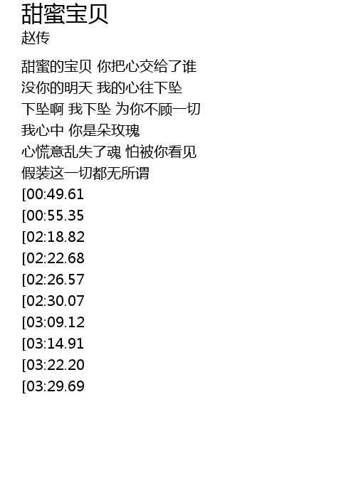 | [03:38.85][03:09.12][01:20.58] | 甜蜜的宝贝 别让我心碎 |