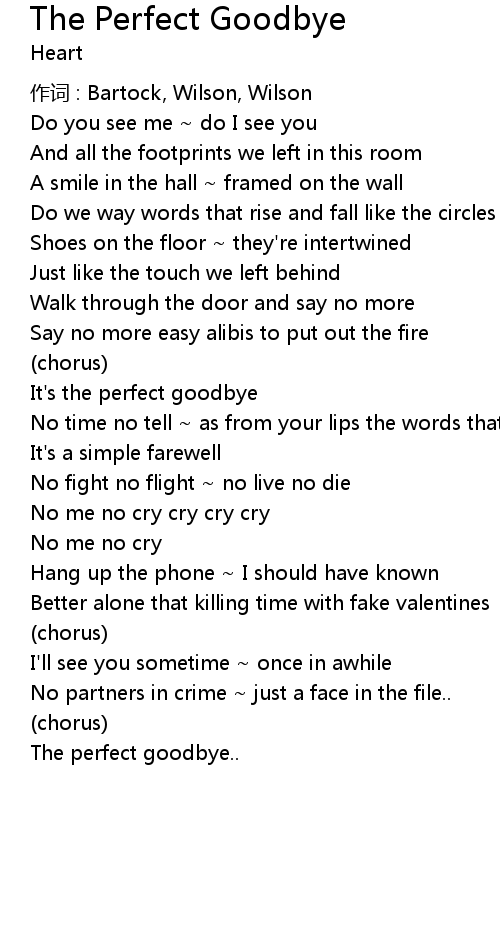 | Song | The Perfect Goodbye |