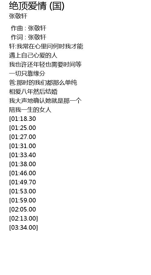 | [03:18.00][01:59.00] | 轩:爱情是用时间酿成的美酒 |