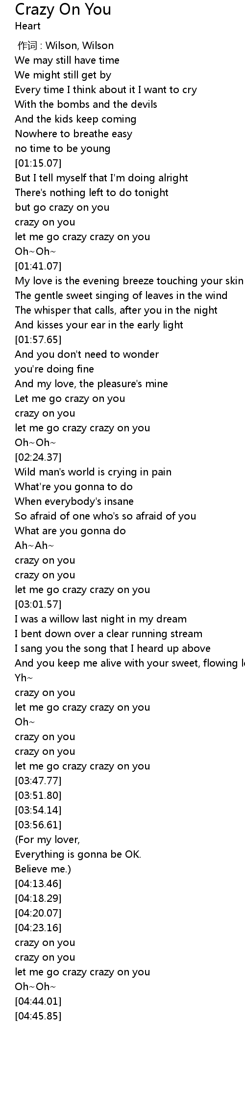 | [02:54.94] | crazy on you |