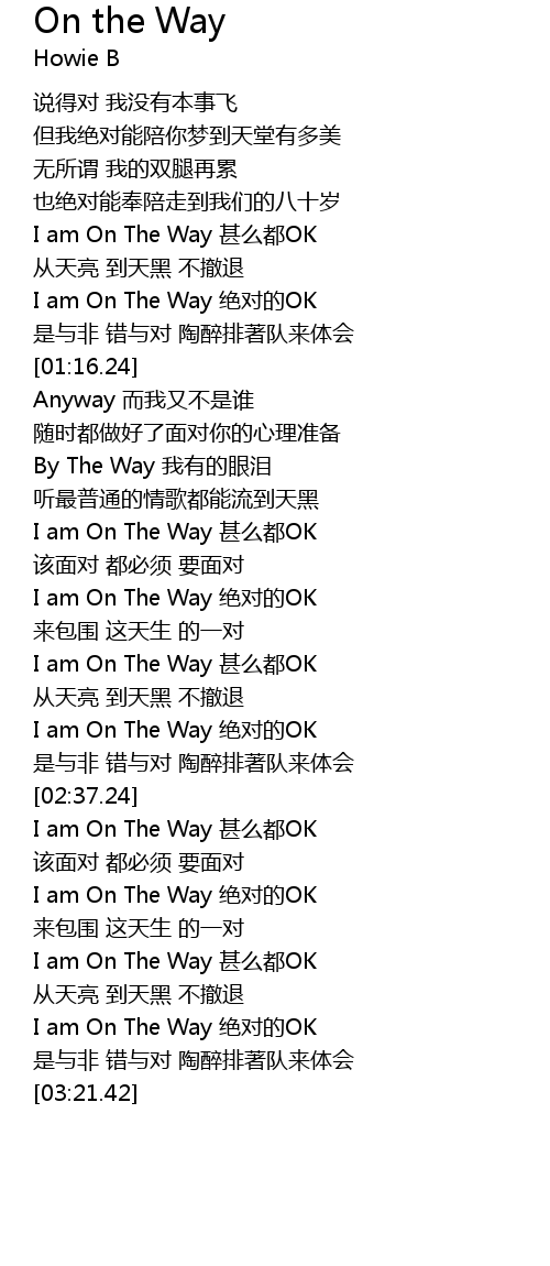 | [03:02.95] | I am On The Way shèn me dōu OK |