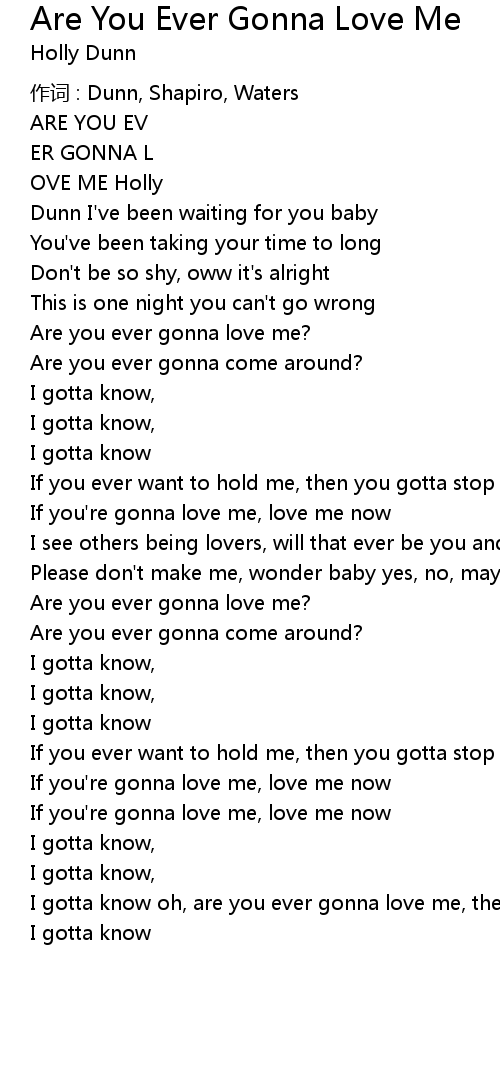 | I gotta know oh, are you ever gonna love me, then love me now | |