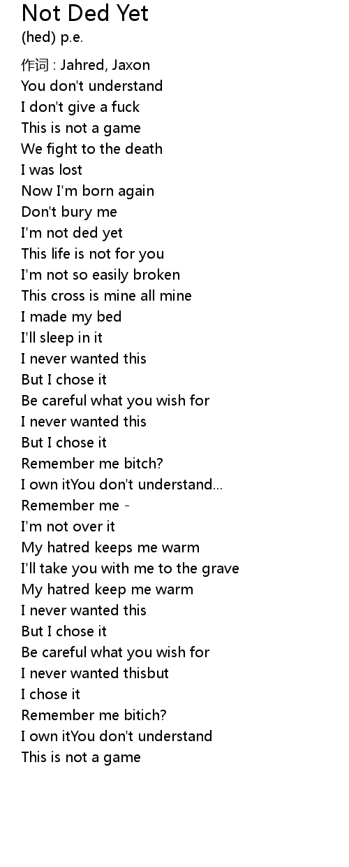 | I' m not ded yet | |