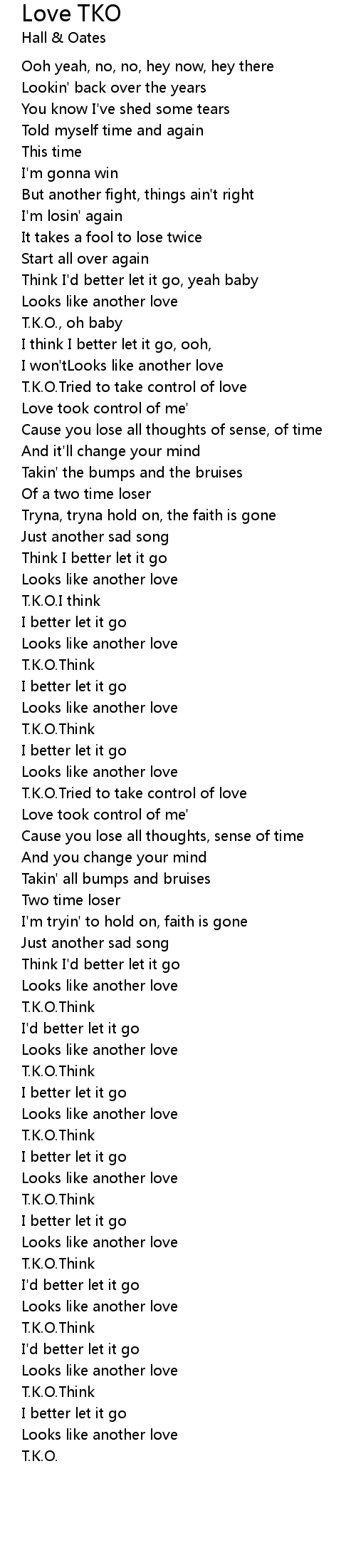 T.K.O.Tried to take control of love |