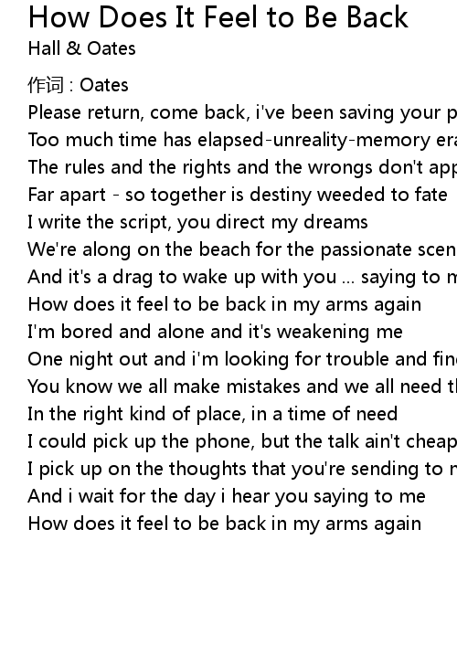 | How does it feel to be back in my arms again | |