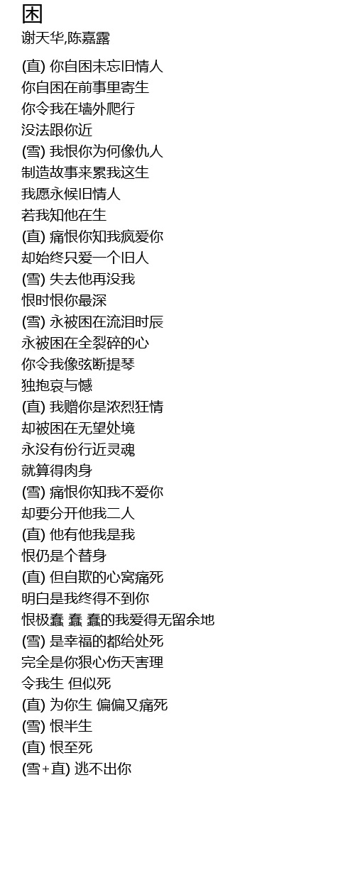 | [01:35.75] | (雪+直) 逃不出你 |
