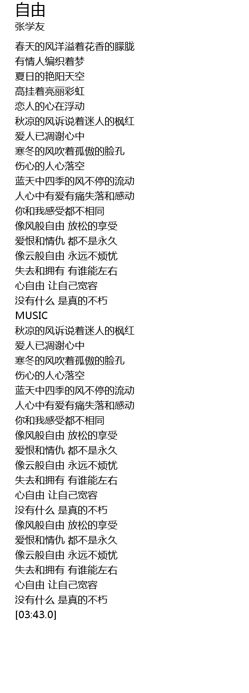 | [03:25.0] | 像云般自由 永远不烦忧 |