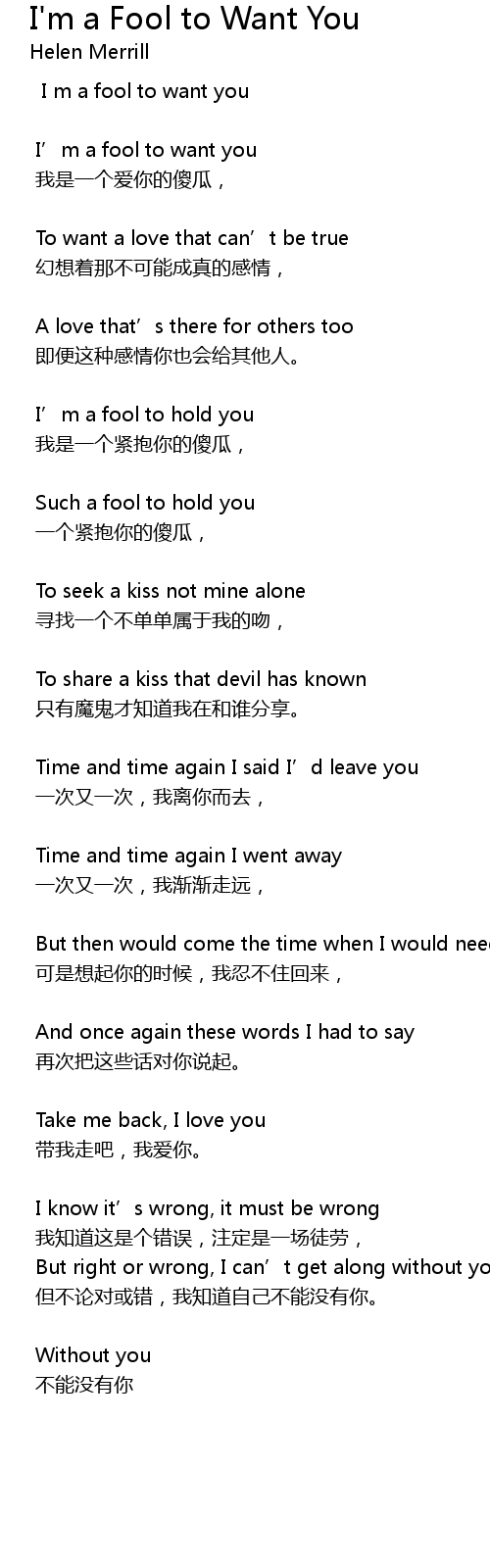 | dan bu lun dui huo cuo, wo zhi dao zi ji bu neng mei you ni. | |