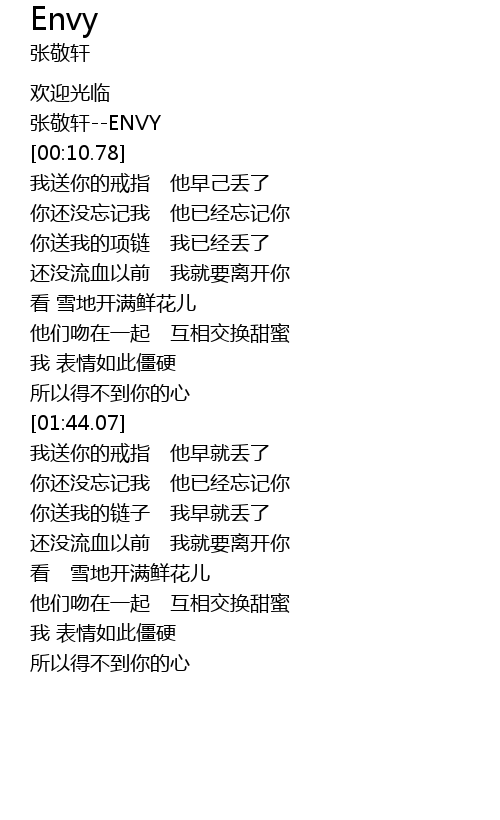 | [00:06.47] | 张敬轩--ENVY |