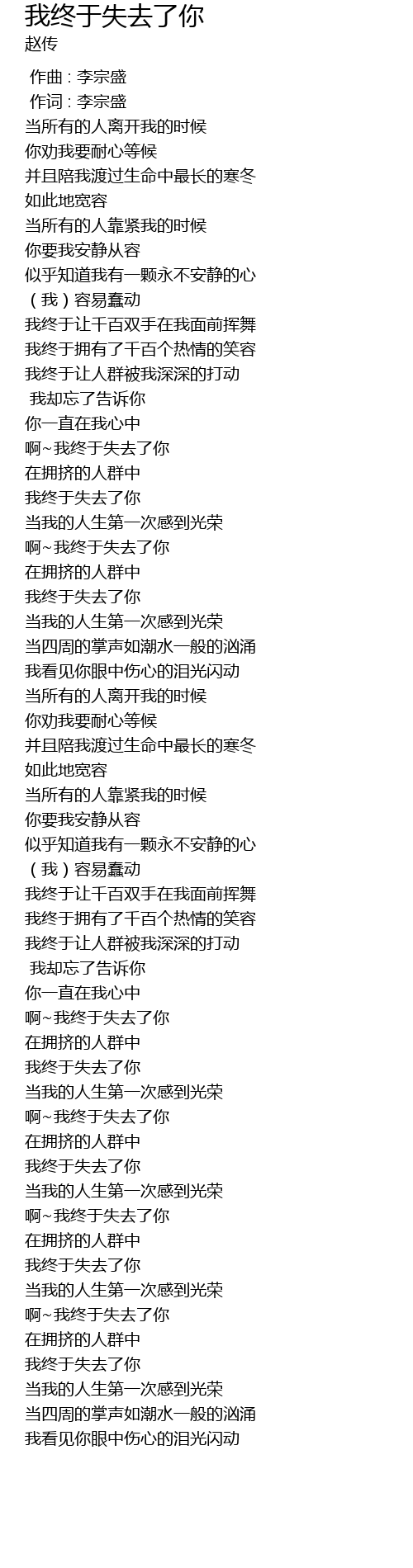 | [04:19.100] | wǒ zhōng yú shī qù le nǐ |