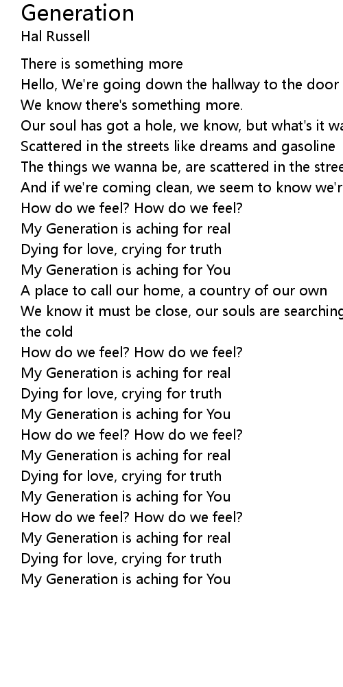 My Generation is aching for You |