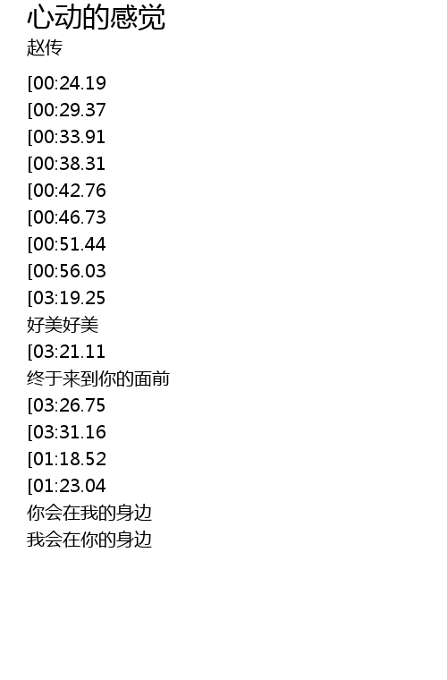 | [03:36.71][03:19.25][02:59.35][02:24.09][01:00.23] | 一种心动的感觉 好美好美 |