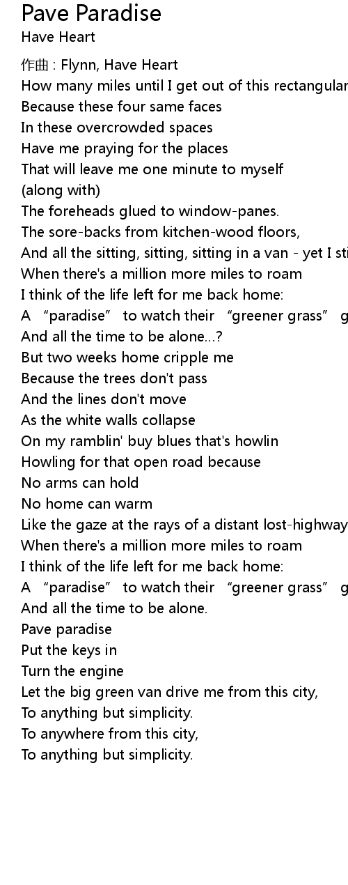 | Song | Pave Paradise |