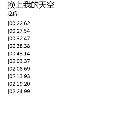 | [02:27.45][02:03.37][00:46.27] | huan shang wo de tian kong san fa chu zi xin de xiao rong |