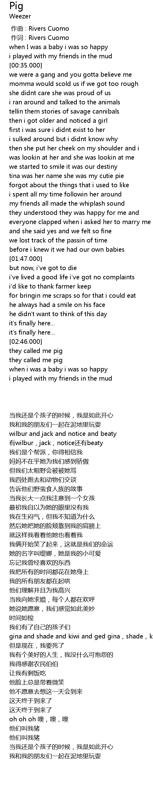 | [02:55.000] | they called me pig |