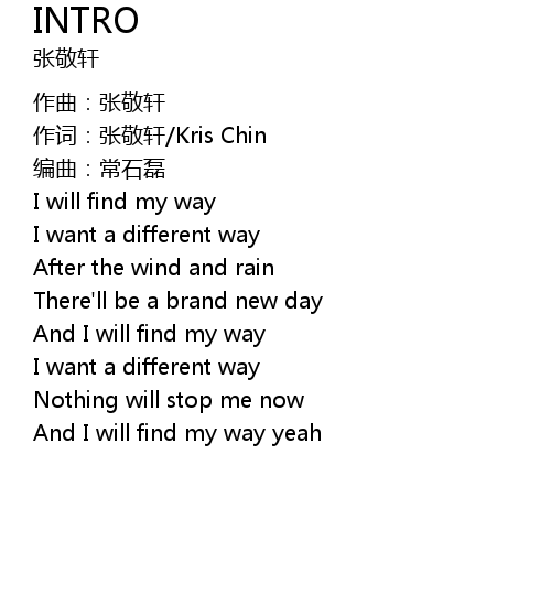 | [00:01.34] | zuò cí: zhāng jìng xuān Kris Chin |