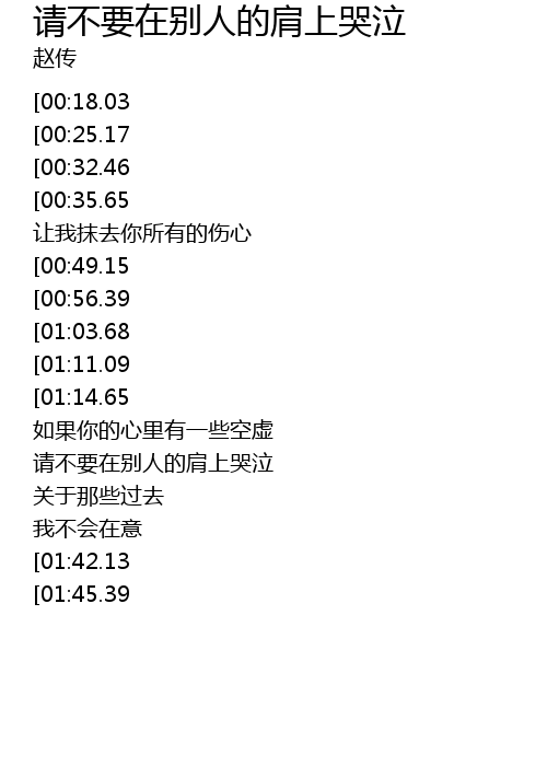 | [01:27.38] | 请不要在别人的肩上哭泣 |