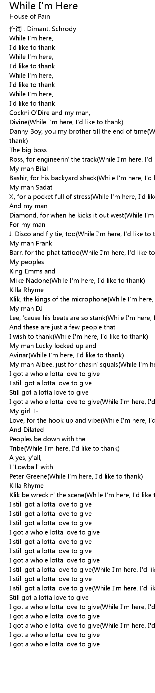 | I still got a lotta love to give While I' m here, I' d like to thank | |