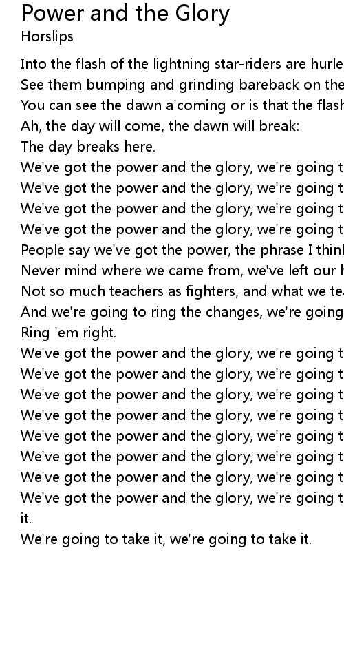 We've got the power and the glory, we're going to take it, we're going to take it. |