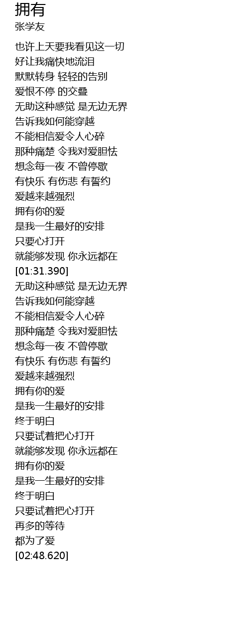 | [02:30.410] | yōng yǒu nǐ de ài |