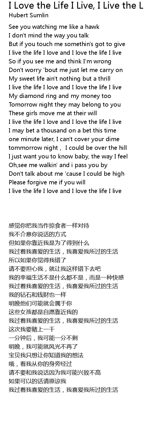 | Song | I Love the Life I Live, I Live the Life I Love |
