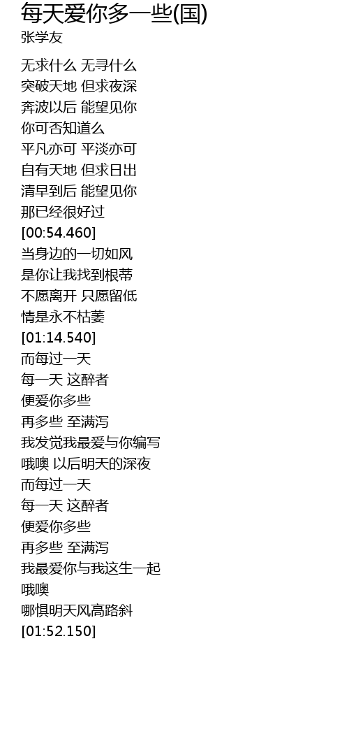 | [01:36.890] | biàn ài nǐ duō xiē |
