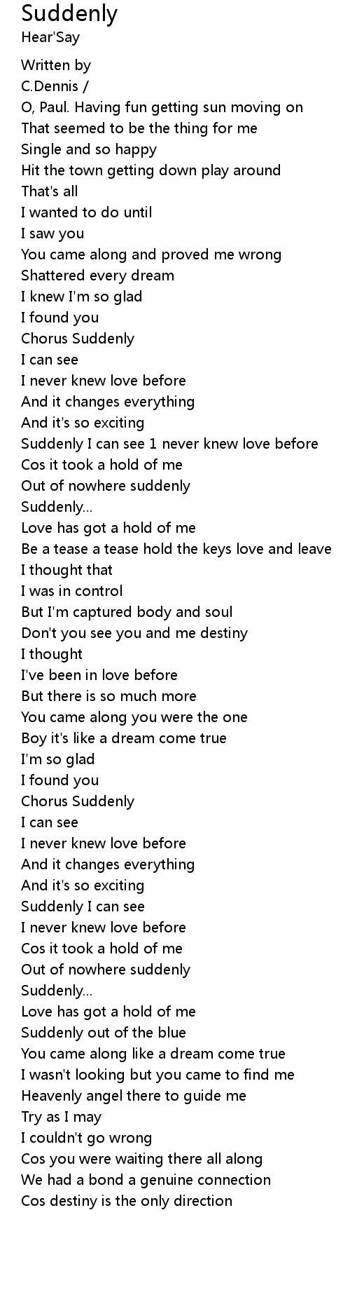 | Suddenly I can see 1 never knew love before | |