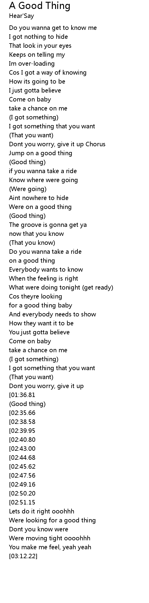 | [02:18.96] | Were looking for a good thing |