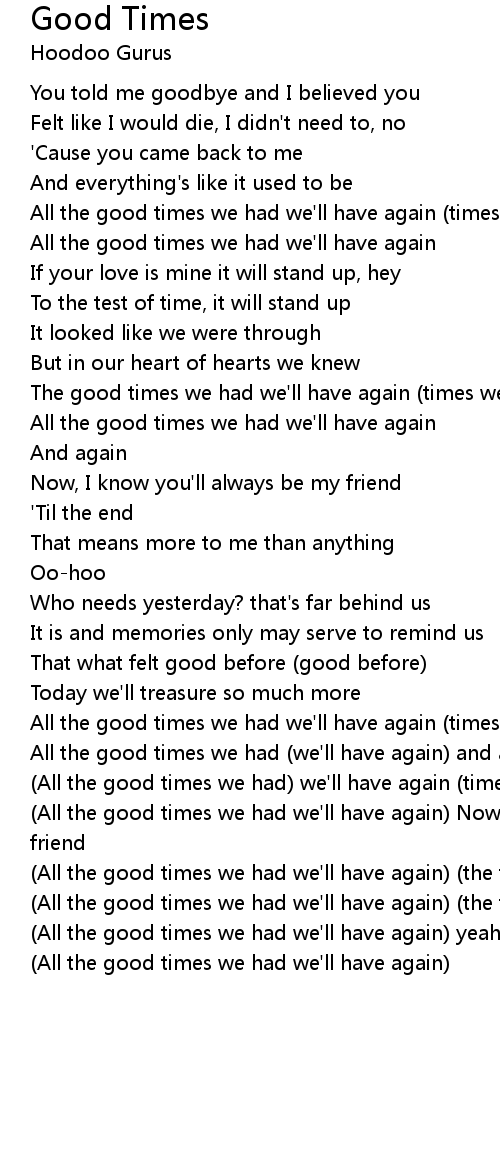 The good times we had we'll have again (times we had) |