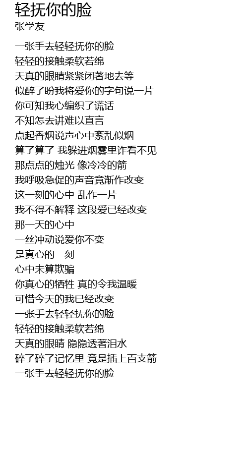 | [03:05.00] | 一张手去轻轻抚你的脸 |