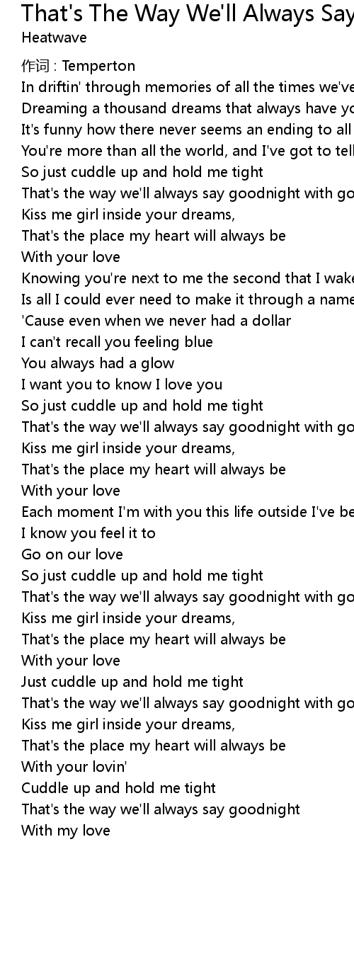 | That' s the way we' ll always say goodnight with good lovin' | |