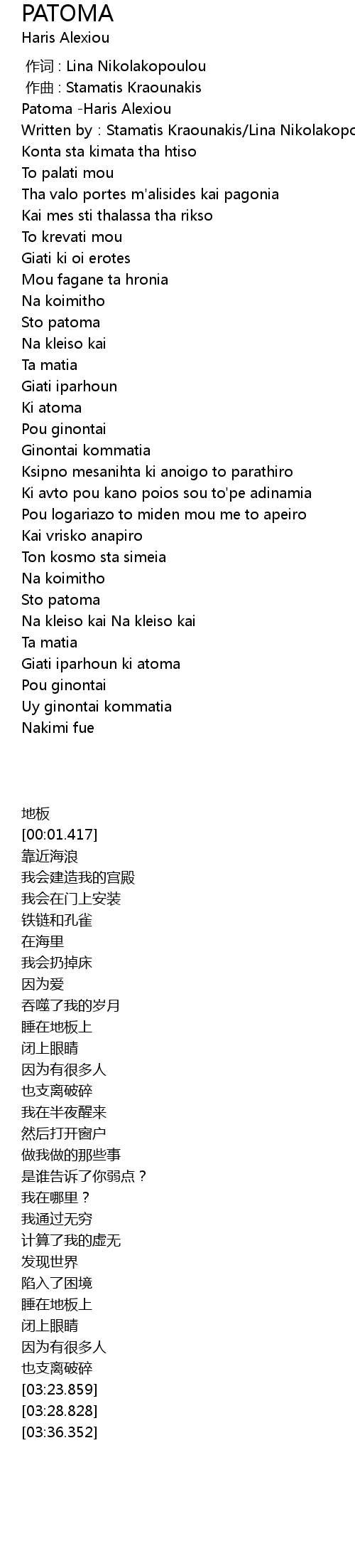 | [00:00.000] | 作词 : Lina Nikolakopoulou |
