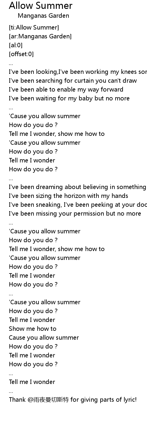 | [03:11.21] | Thank @雨夜曼切斯特 for giving parts of lyric! |