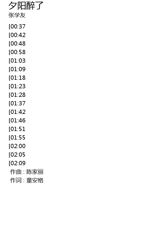 | [02:48][00:37] | 夕阳醉了 落霞醉了 |