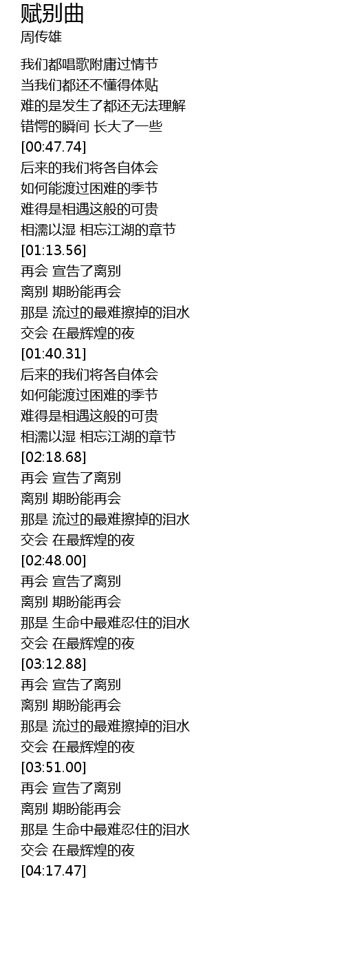 | [03:51.42] | zài huì xuān gào le lí bié |