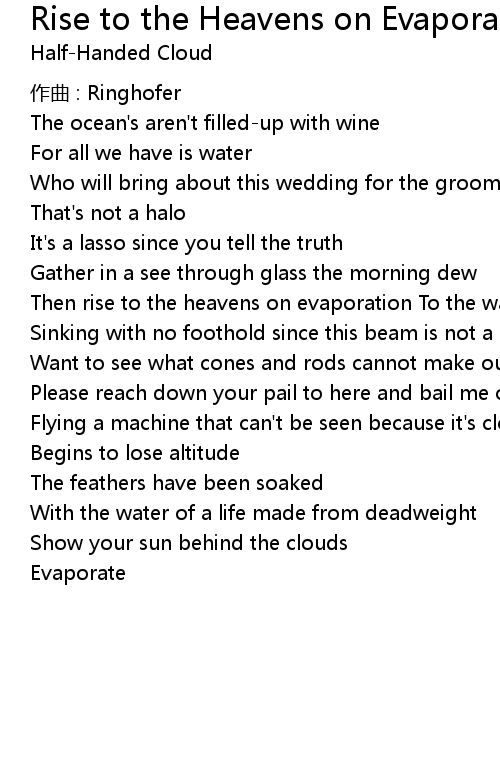 | Then rise to the heavens on evaporation To the waters inching up my neck | |