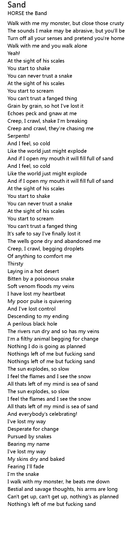 And if I open my mouth it will fill full of sand |