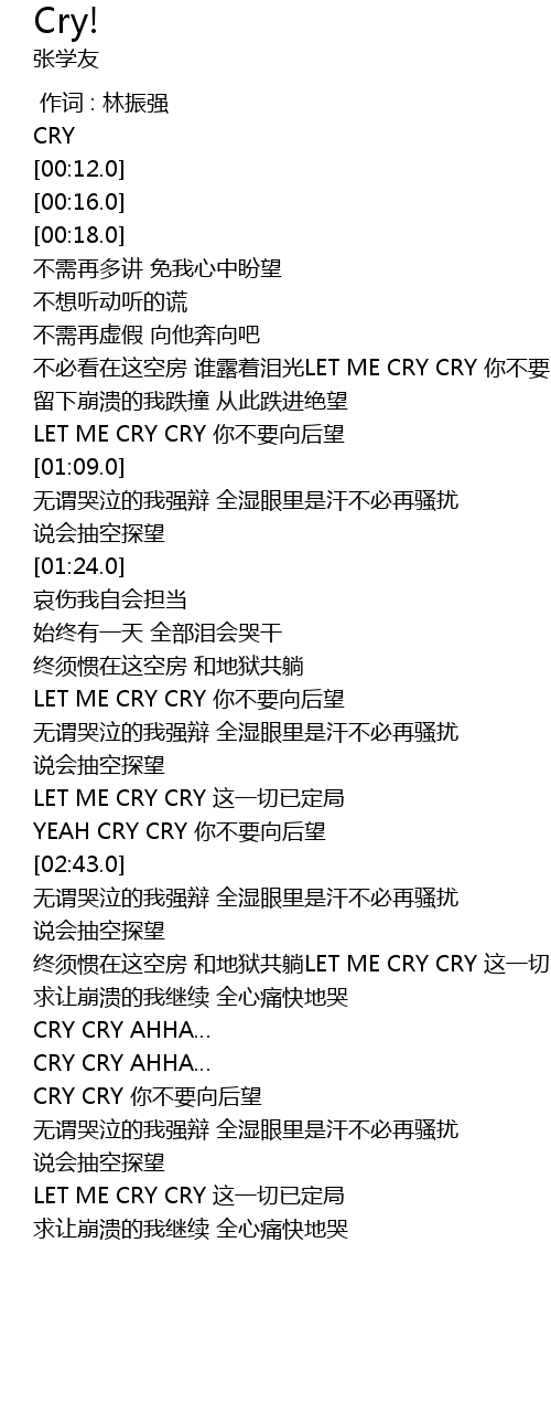 | [01:02.0] | LET ME CRY CRY 你不要向后望 |