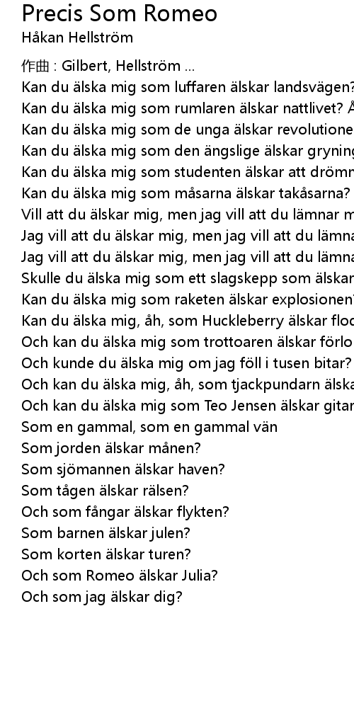 | Kan du älska mig som rumlaren älskar nattlivet? Åh | |