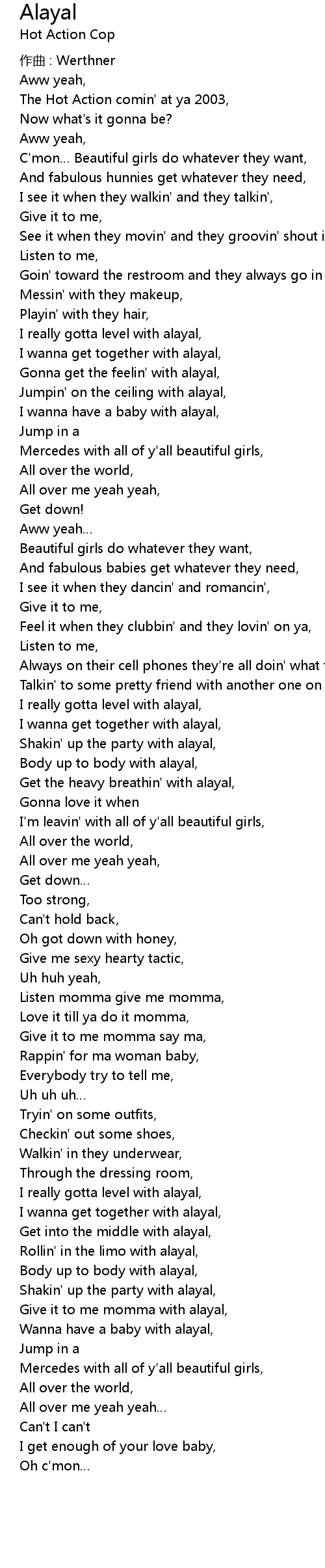 | Gonna get the feelin' with alayal, | |