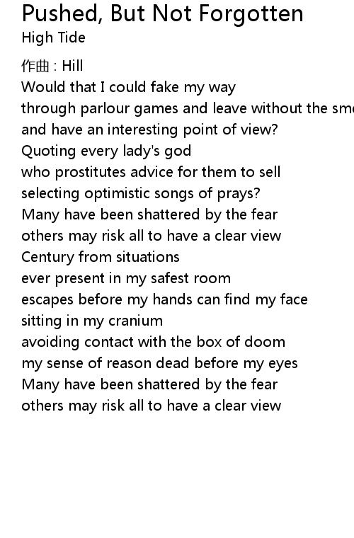| Song | Pushed, But Not Forgotten |