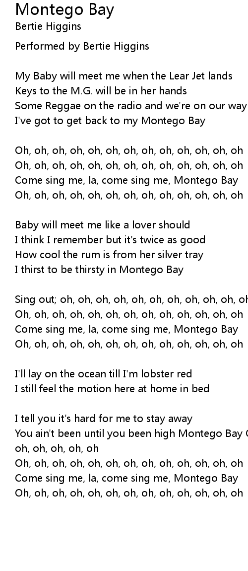 You ain't been until you been high Montego Bay Oh, oh, oh, oh, oh, oh, oh, oh, oh, oh, oh, oh, oh |