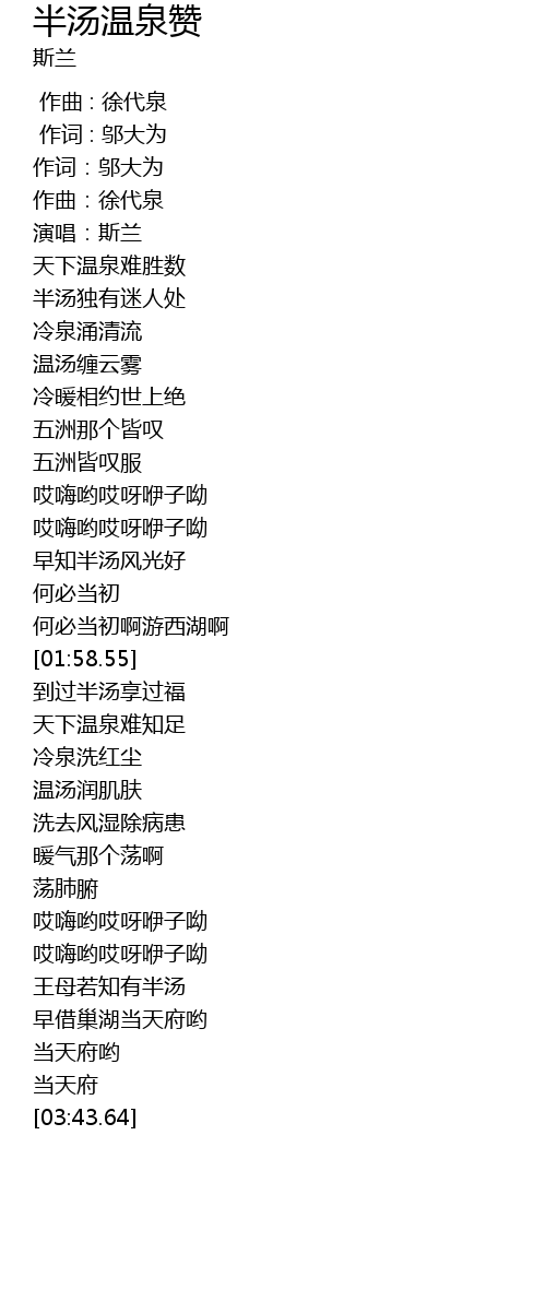 | [01:44.60] | 何必当初啊游西湖啊 |