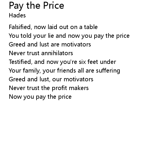 | You told your lie and now you pay the price | |