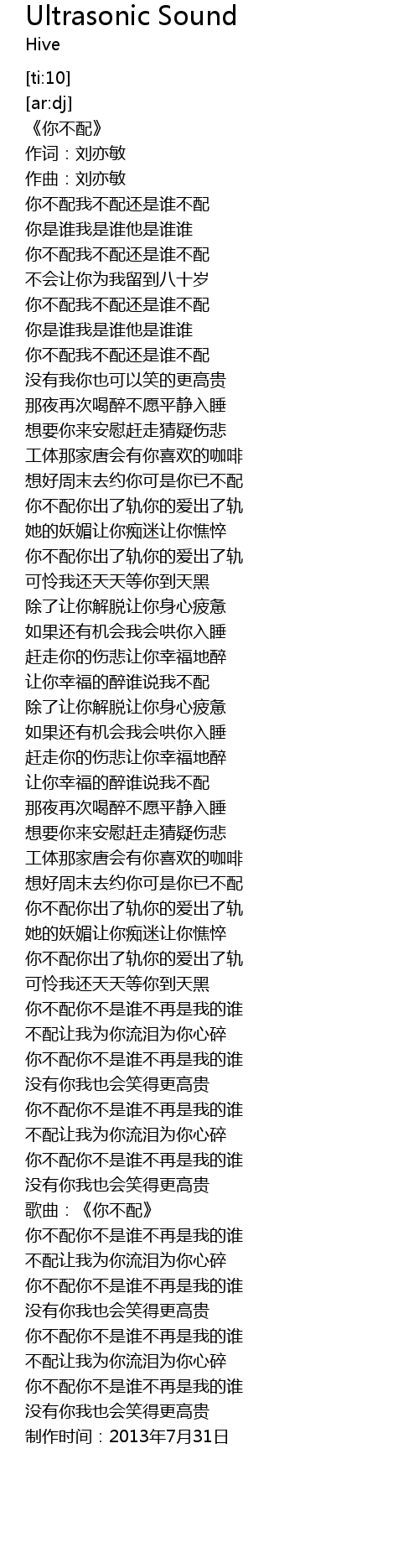 | [02:10.952] | 你不配你出了轨你的爱出了轨 |
