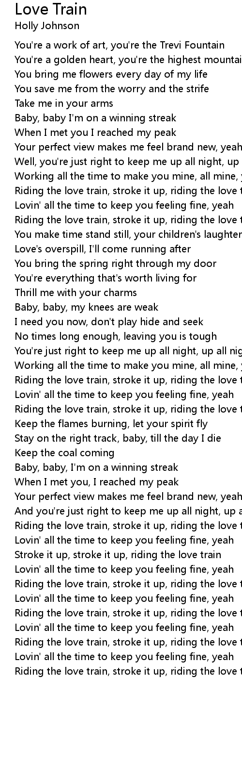 Riding the love train, stroke it up, riding the love train |
