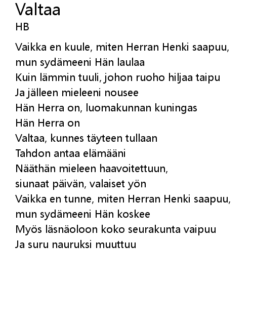 | Song | Valtaa |