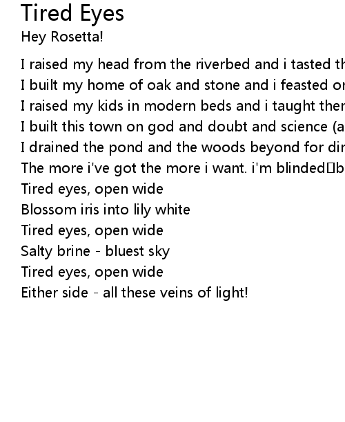 | Tired eyes, open wide | |