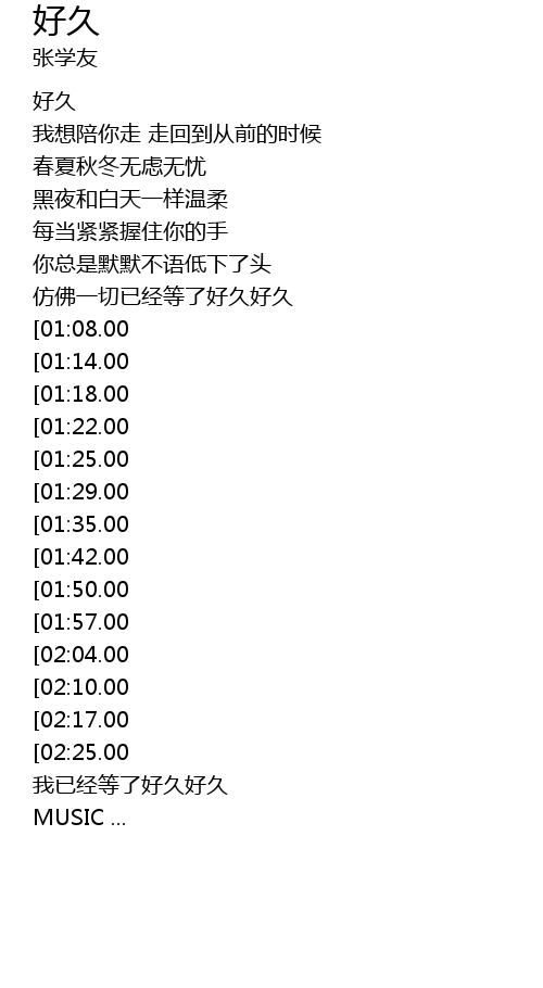 | [00:05.00] | 好久 |