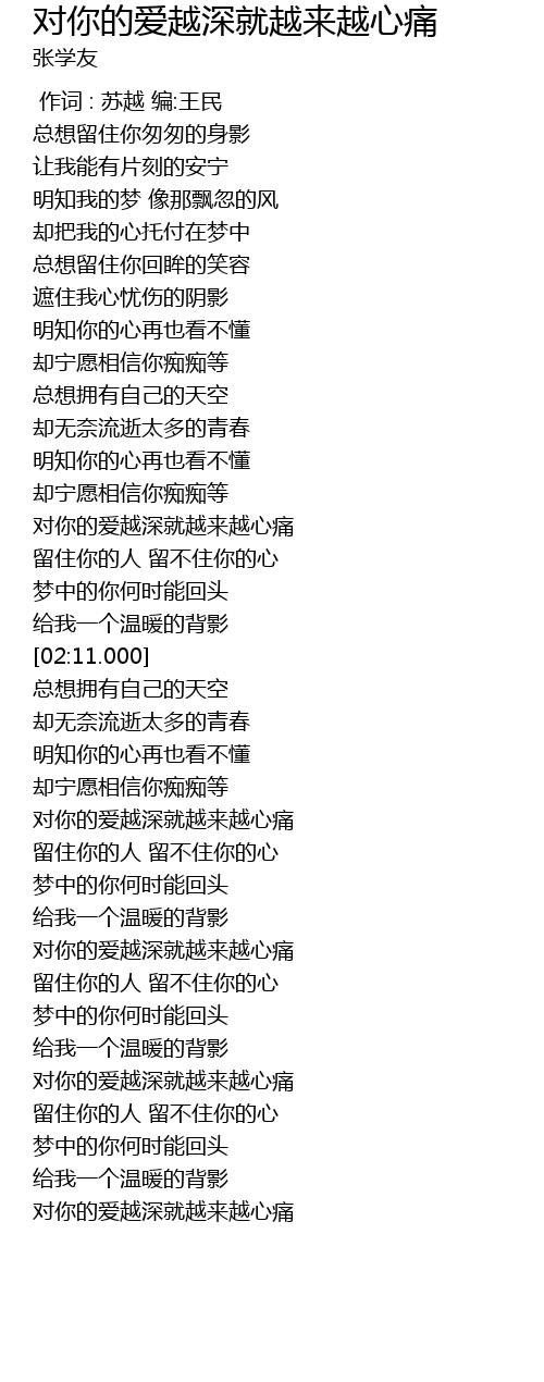 | [03:01.000] | 对你的爱越深就越来越心痛 |